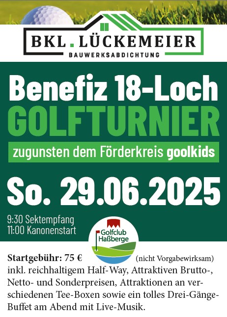 Auch im zehnten Jahr des Bestehens von goolkids kann sich der Förderkreis auf die Unterstützung von BKL.Lückemeier verlassen. Zum wiederholten Mal richtet die Firma ein Benefiz-Golfturnier zugunsten von goolkids aus. Am 29. Juni beginnt um 11 Uhr das Turnier im Golfclub Haßberge.